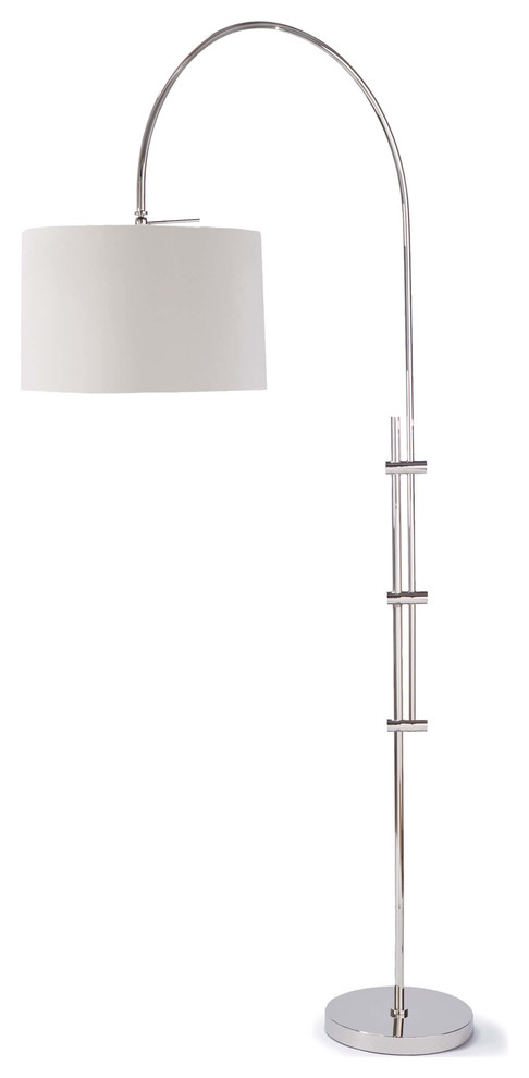 The lamp comes in an antique brass finish that leads to a cream shade, while 2 stylish on/off pull chain switches hang out from the bottom. The lamp comes in an antique brass finish that leads to a cream shade, while 2 stylish on/off pull chain switches hang out from the bottom. A smart and stylish way to light up a seating area, the bowery arc lamp provides overhead lighting that can be controlled with an adjustable arm. ··· fabric shade designer arc floor lamp.