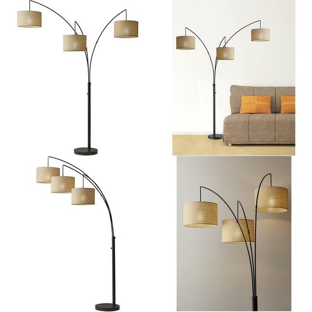 A trio of white drum shades are suspended from brushed steel. Its design makes it perfect for placing in a dark corner. Adesso 3219 black prospect single light 56h integrated led arc floor lamp. The contemporary trinity arc lamp presents a stylish alternative to the typical arc lamp.