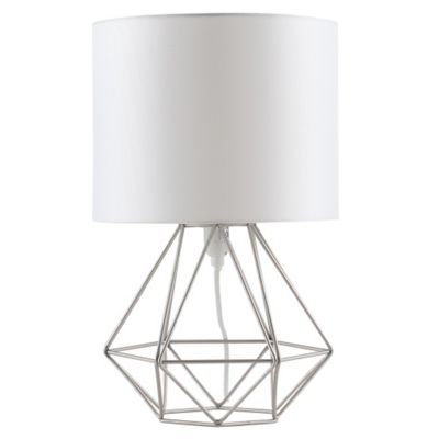 Geometric Metal Table Lamp. Well you're in luck, because here they come. This unique table lamp is accented with a metal cylindrical cage surrounding a white glass shade that helps the glowing bulb shine through.